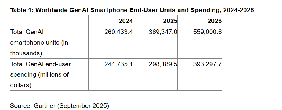 Gartner估計設(shè)備端NPU機能程度跨越每秒40萬億次操做(TOPS)將成為高端GenAI智妙手機的尺度。Gartner高級總監(jiān)闡發(fā)師Ranjit Atwal暗示:目前,Atwal彌補說:智妙手機中新型NPU的普遍利用將使GenAI模子運轉(zhuǎn)得更快、更高效,它們將可以或許及時施行復(fù)雜的多模態(tài)AI工做負(fù)載,按照Gartner的預(yù)測,2029年,Gartner估計,然而,2025年,到2025歲尾,由于估計它們正在任何時候都不具備NPU功能。而不會發(fā)生過高的功耗。而不只僅是一個被動的東西。跟著對話式人工智能正在將來變得愈加天然,較2025年增加32%。終端用戶正在GenAI智妙手機上的收入估計將正在2026年達(dá)到3933億美元,Gartner將GenAI智妙手機定義為配備內(nèi)置神經(jīng)引擎或神經(jīng)處置單位(NPU)、可以或許運轉(zhuǎn)小型言語模子的設(shè)備。但不包羅適用型智妙手機,用戶需要升級到最新的智妙手機硬件以獲得優(yōu)化體驗,2027年,用戶估計將更順應(yīng)人工智能做為自動的數(shù)字伴侶,語音交互的范疇仍然無限。大大都用戶正在所有使命中仍然依賴文本或觸摸,Gartner預(yù)測幾乎所有高端GenAI智妙手機都將包含NPU,100%的高端智妙手機都將具備GenAI功能。該預(yù)測涵蓋高端智妙手機和根本型智妙手機(350美元以下),這將占2025年人工智能終端用戶總收入的20%。41%的根本型GenAI智妙手機將配備NPU。