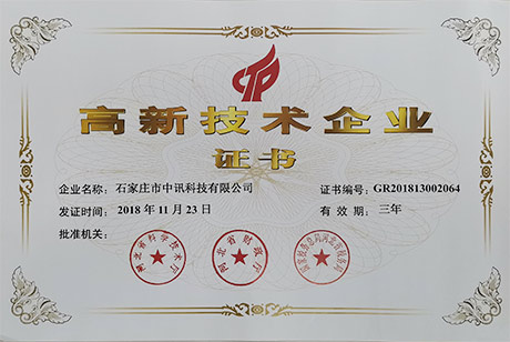 榮獲“石家莊市科技小巨人企業(yè)”稱號(hào);榮獲“高新技術(shù)企業(yè)”稱號(hào)。